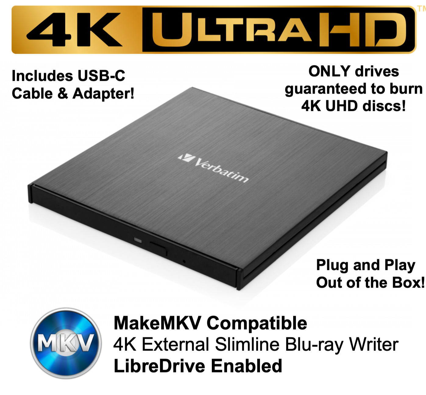 - Ultra HD 4K External Slimline Blu-ray Writer (Pre-Flashed & LibreDrive Enabled)